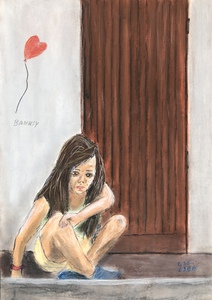 Mensen - Meisje bij blauwe muur - 2020-04